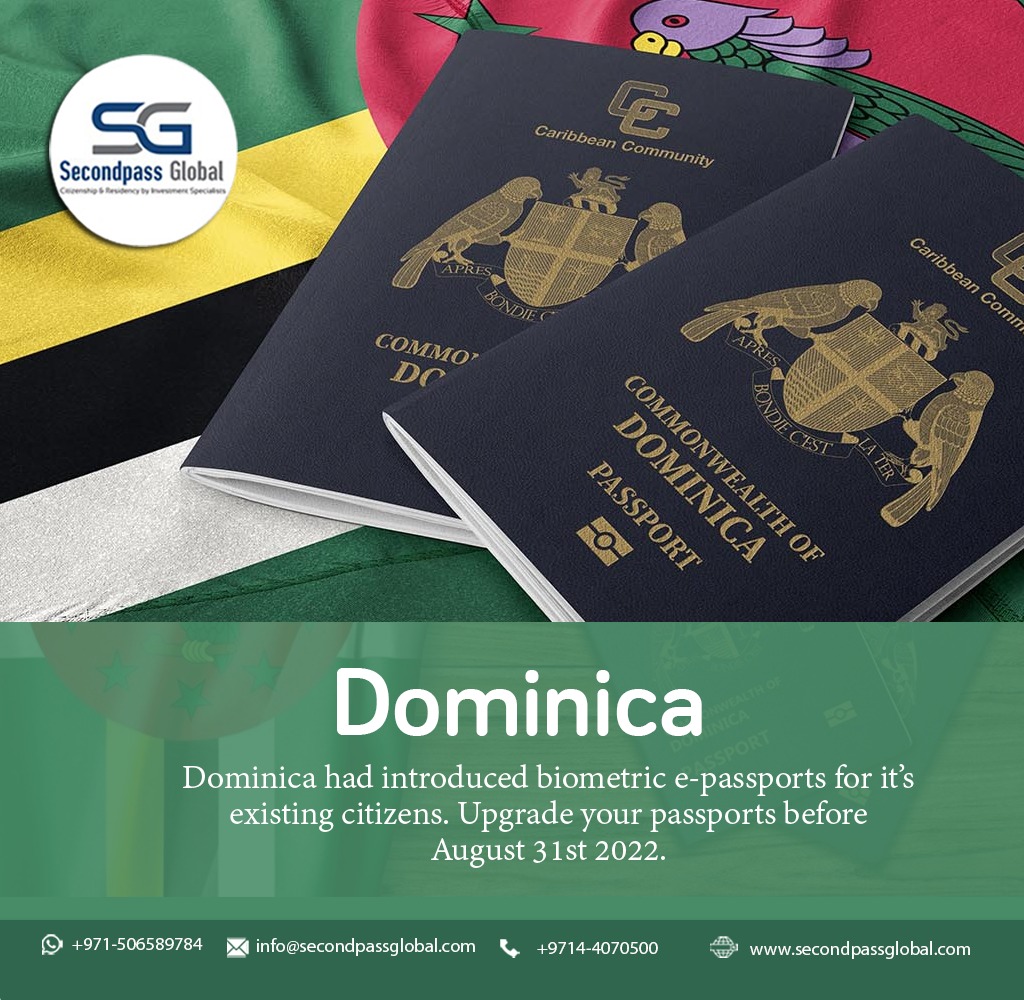 The Commonwealth of Dominica has upgraded their passports to biometric e-passports. Replace your old passports before 31st August 2022 and enjoy hassle free travel.