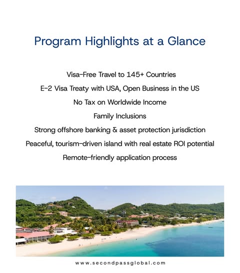 Enjoy visa-free access to 145+ countries, take advantage of the E-2 visa treaty with the USA, and open a business in the US. With no tax on worldwide income and a strong offshore banking system, Grenada offers a secure future for you and your family. Experience real estate ROI potential in a peaceful island paradise with a simple, remote-friendly application process.