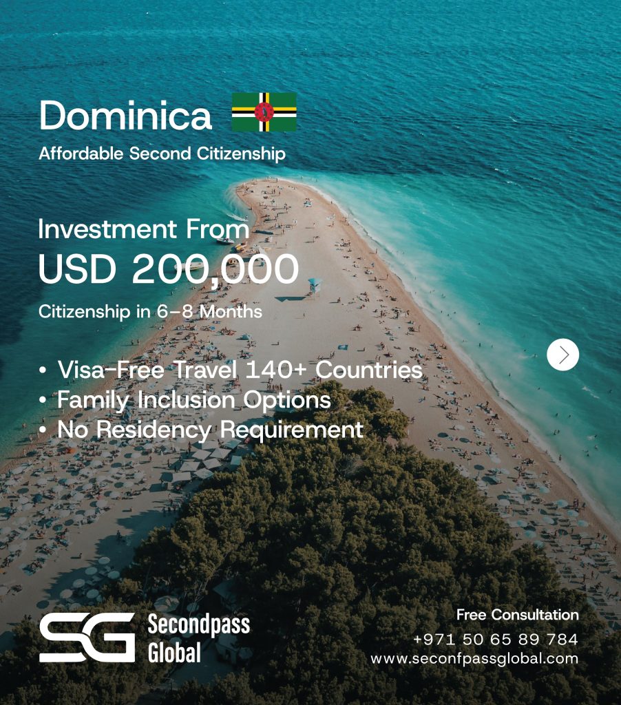 Dominica offers one of the most affordable pathways to second citizenship through its trusted Citizenship by Investment program 🇩🇲. With investments starting from USD 200,000, applicants can obtain citizenship within 6–8 months while enjoying visa-free travel to 140+ countries.