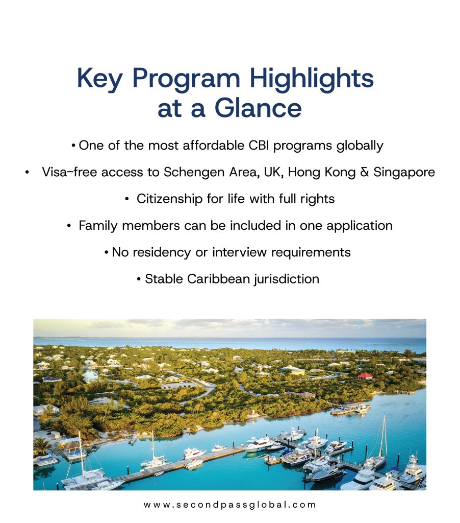 The program requires no residency and allows family members to be included under one application. Successful applicants receive lifetime citizenship with full rights, making it a practical option for individuals and families seeking global mobility and long-term security.