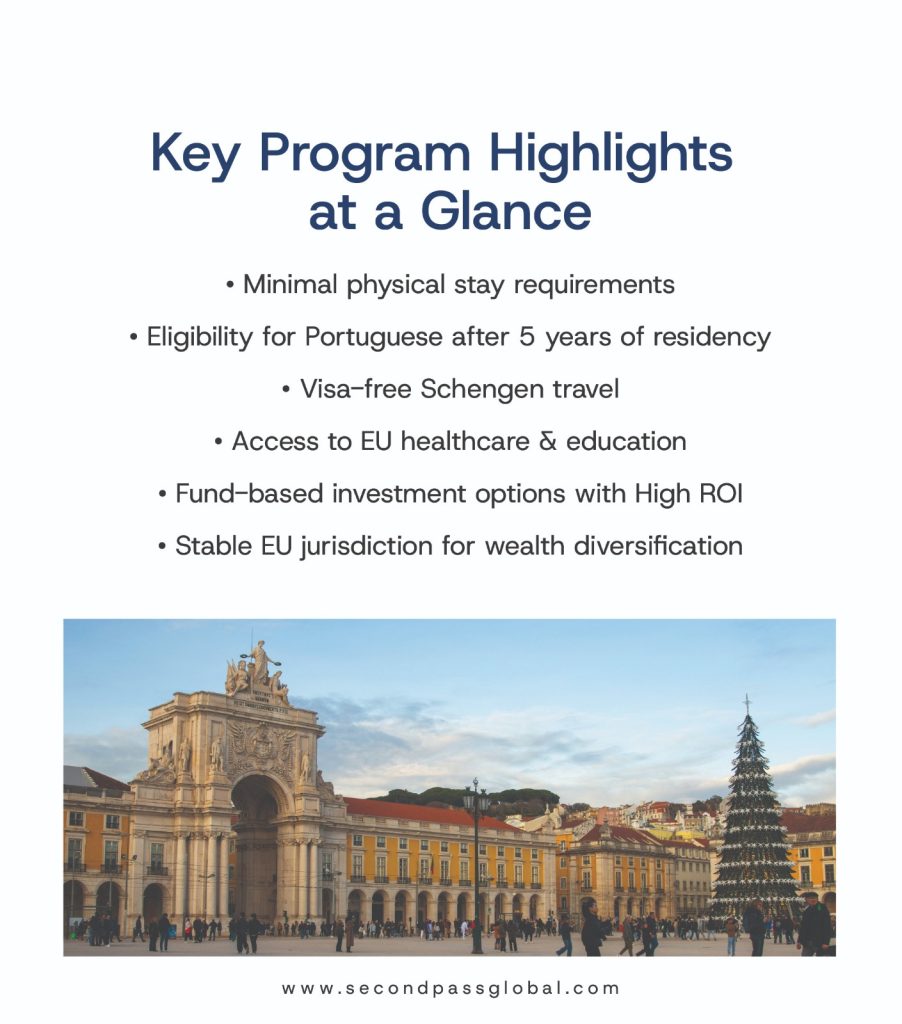 Portugal offers a unique opportunity to combine lifestyle with long-term European security. With investments starting from $500,000, applicants can obtain residency within approximately 1.5 years while maintaining minimal physical presence in the country.